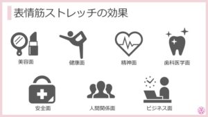 ① 美容面 ② 健康面 ➂ 精神面 ④歯科医学面 ⑤安全面 ⑥人間関係面 ⑦ ビジネス面